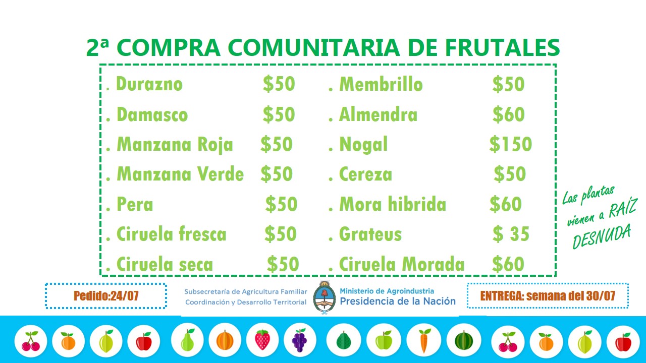 La Subsecretaría de Agricultura Familiar de la Nación ha puesto en marcha la segunda parte de compra comunitaria de frutales de pepita y carozo para una parte del territorio de la provincia, llevando adelante esta tarea sin intermediarios.