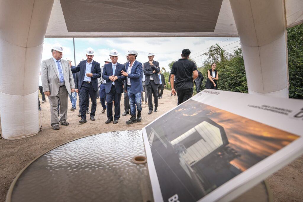 En una carpa, el equipo de ‘Nodo’ compartió con Poggi detalles del proyecto e intercambiaron puntos de vista respecto a la iniciativa. Después, la comitiva realizó una recorrida por los puntos estratégicos del predio para conocer la obra, algunos espacios claves en el desarrollo del proyecto y su nivel de avance. Además de las naves comerciales y de logística, tendrá sector gastronómico, aulas para capacitación y parking, entre otros espacios.