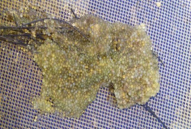 El fenómeno se da en el marco del proceso reproductivo de primavera, donde las hembras liberan los huevos para generar la fecundación. En esta ocasión, se estima que se liberaron más de 25.000 huevos.
