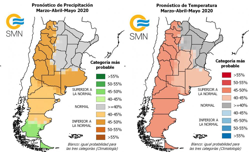 El pronóstico elaborado en el ámbito del Servicio Meteorológico Nacional por entidades oficiales, entre las que se encuentra la cátedra de Climatología y Fenología Agrícolas de la FAUBA (https://www.smn.gob.ar/