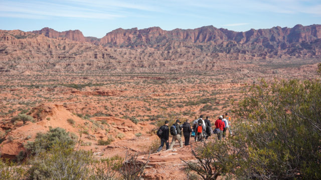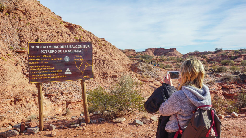 En San Luis, el Parque Nacional Sierra de las Quijadas muestra las paredes erosionadas del Potrero de la Aguada que destacan como el principal atractivo paisajístico del área. En un ambiente en que la falta de agua es la norma, los fósiles son la evidencia de que el lugar fue bien diferente en otros tiempos, cuando bosques y lagunas eran la característica distintiva del sitio. En una caminata de cuatro horas, en compañía de un guía habilitado, se puede descender hasta llegar a los colosales paredones rojizos del sendero Farallones para admirar las espectaculares dimensiones del lugar desde una pequeña escala humana. Para visitarlo, es posible alojarse tanto en San Luis, la capital provincial, como en la ciudad de Merlo, villa turística con infinidad de propuestas.