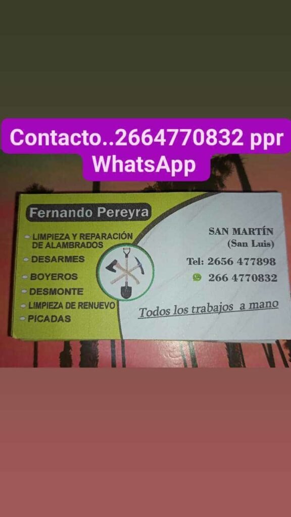 En la provincia de San Luis, donde la producción agropecuaria es motor de desarrollo económico y social, los trabajos de mantenimiento, limpieza y preparación de los campos resultan esenciales para garantizar la eficiencia productiva. En este contexto, un grupo de trabajadores rurales encabezado por Fernando Pereyra ofrece una amplia gama de servicios especializados, avalados por la experiencia y el conocimiento práctico del rubro.