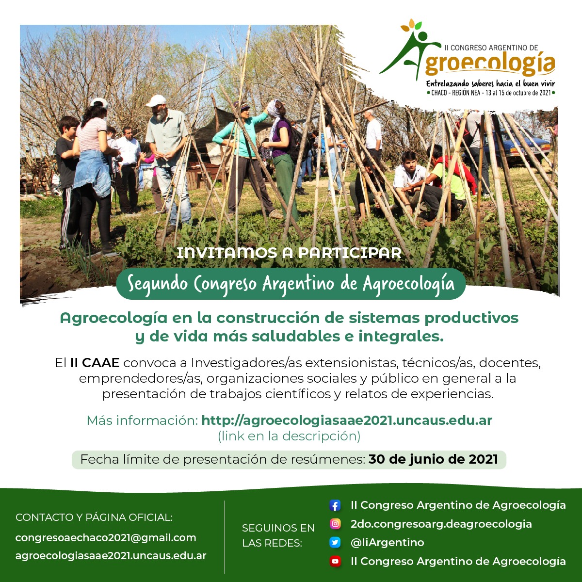La Sociedad Argentina de Agroecología (SAAE) reiteró la realización del Segundo Congreso Argentino de Agroecología que se realizará virtualmente desde Chaco- región NEA, del 13 al 15 de octubre de 2021.