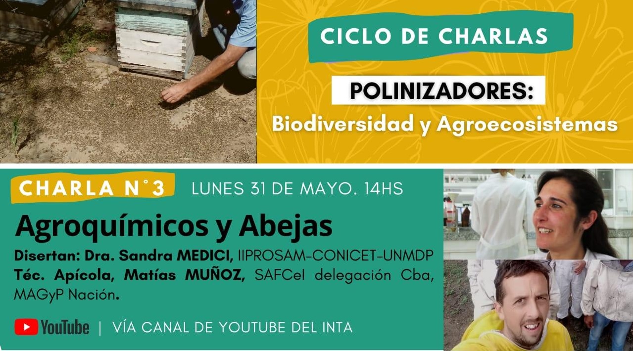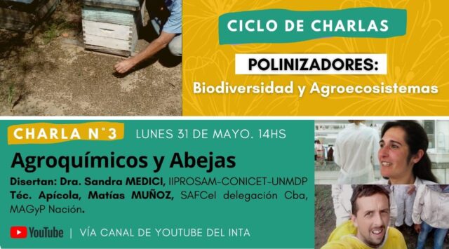 La Secretaría de Agricultura Familiar, Campesina e Indígena (SAFCI) convocó al público en general a participar de la tercera charla del ciclo Polinizadores: Biodiversidad y Agro ecosistemas, referida a “Agroquímicos y abejas”, el próximo lunes 31 a las 14, a cargo de la Dra. Sandra de Medici del IIPROSAM- CONICET-UNMdP y el técnico apícola Matías Muñoz, referente de apicultura de la Región Noroeste de SAFCI en Córdoba.