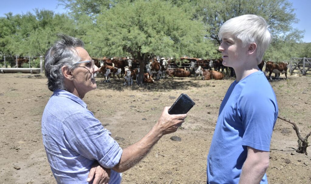 “Empezamos ahora a producir genética porque bueno yo que era muy joven no me metía mucho en el tema, pero ahora que mi papá me permitió sucederlo estoy de lleno comprometido, sabemos el valor agregado que tenemos que es la fácil adaptabilidad en la zona, es un rodeo criado en monte, sierra, con sequía, pastos naturales y estamos muy felices porque logramos tener buenos resultados con la mayoría de lo que es el rodeo”, describió el joven ganadero con inocultable entusiasmo.