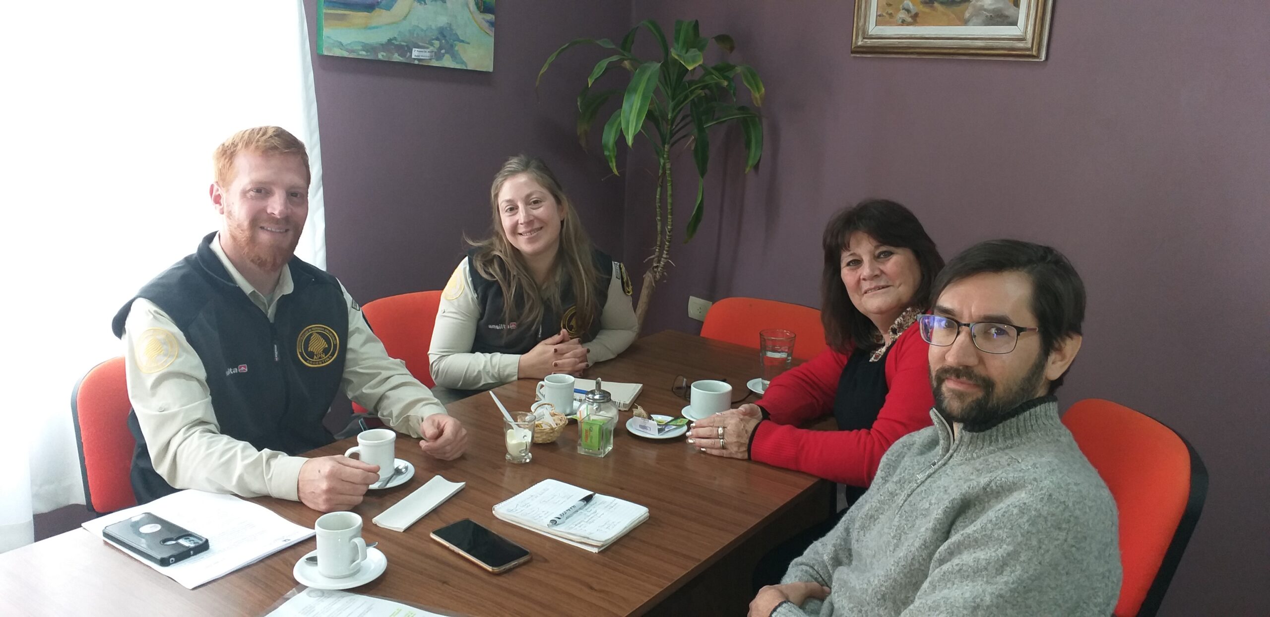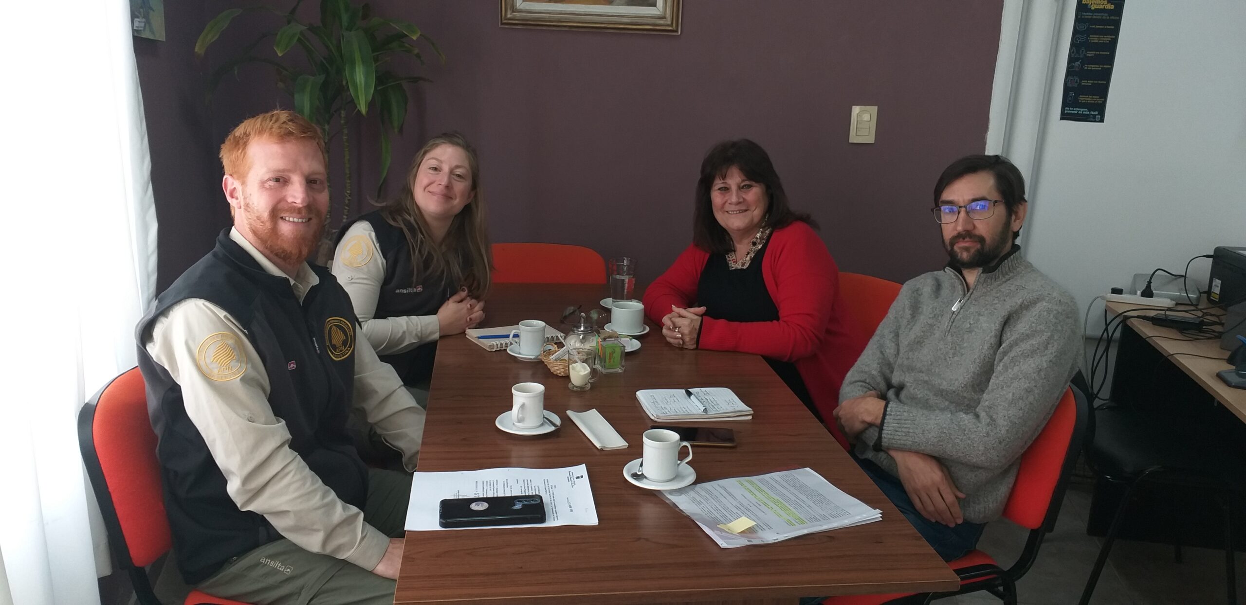 La decana normalizadora de la Facultad de Turismo y Urbanismo (FTU), Dra. Liliana Mentasty, acompañada por el secretario de Investigación, Posgrado e Innovación de la Facultad, Dr. Pablo Perepelizin, recibió a los representantes de la Administración de Parques Nacionales, en la Villa de Merlo, guardaparques Nahuel Valente y Natalia Azarko.