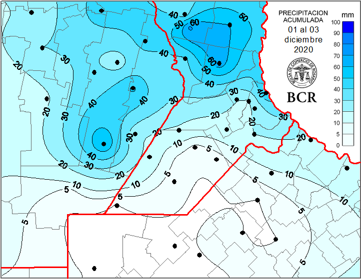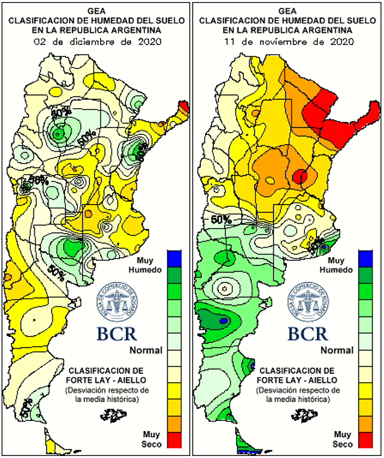 Según los profesionales de la BCR, las lluvias de los últimos días sorprendieron para bien. El oeste de Córdoba recibió mucho más: 20 a 40 mm con lluvias puntuales destacadas, como en Canals con 60 mm. También el centro sur de Santa Fe recibió un empujón de diciembre: las tormentas dejaron entre 20 a 60 mm. El sector de Irigoyen y Classon fue muy beneficiado. Se reactivaron las lluvias», festejaban en Carlos Pellegrini por los 50 mm que recibieron entre el martes y el miércoles más los 60 mm del fin de semana pasado. “Con estas lluvias ahora hay muy buenas expectativas para la soja de segunda de segunda”, dijeron a GEA técnicos, algo que parecía imposible 7 días atrás.