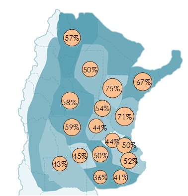 En la zona núcleo pampeana (sur de Santa Fe y norte de Buenos Aires), en tanto, esa proporción es del 44%. Esa cifra sigue siendo inferior al 49% registrado en noviembre de 2015 cuando se dio el fin del kirchnerismo y el cambio de gobierno.