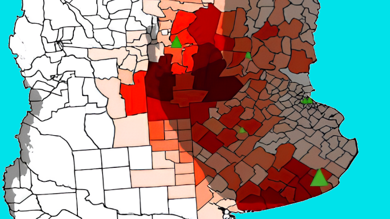 “A partir de datos de la Bolsa de Cereales, de la Secretaría de Agroindustria y de Cámara de la Industria Argentina de Fertilizantes y Agroquímicos, vimos que el 37% del nitrógeno total se aplica en la provincia de Buenos Aires; el 26%, en Córdoba; el 12%, en Santa Fe y el 7%, en Entre Ríos. Esto puede verse con más detalle en el mapa que generamos para las distintas jurisdicciones agrícolas”, informó Sebastián.