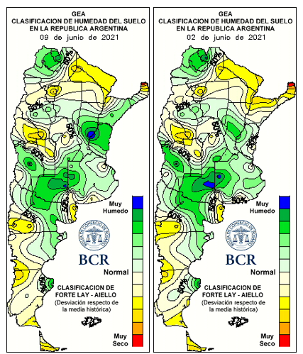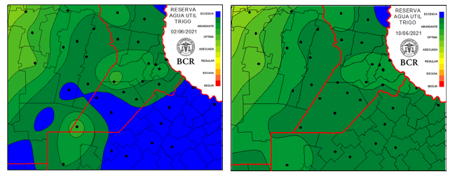 Este año, en cambio la siembra arrancó con todo el potencial agroclimático. Hay algunos problemas de falta de agua en algunas zonas, pero con pocos milímetros podrían resolverse: las reservas actuales de humedad no muestran áreas reservas regulares todavía. Por otro lado la humedad sigue ingresando a la región y habrá que ver si logran transformarse en precipitaciones. En general, hay un buen escenario de siembra, por lo que esta vez sí se espera concretar la intención de 1,7 M ha de trigo.