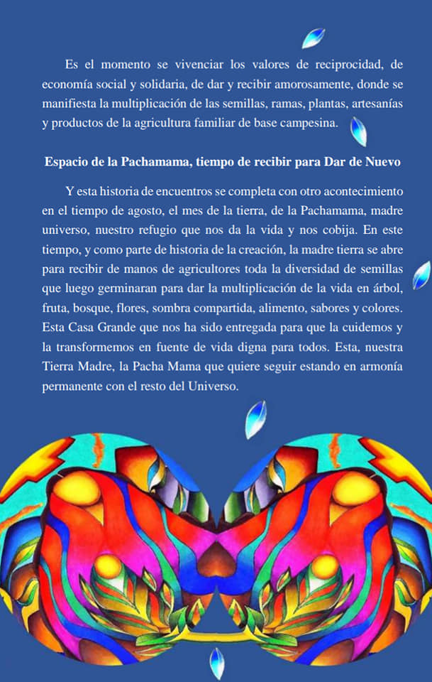 El trabajo está presentado en imágenes, con ilustraciones del reconocido pintor boliviano Mamani Mamani. Destaca el modo de producción de los pueblos y plantea repensar nuevas formas de relacionamiento, con nosotros mismos y con los otros, recordando e imitando los encuentros que se dan en los ciclos de la naturaleza.
