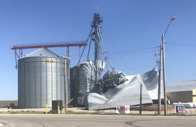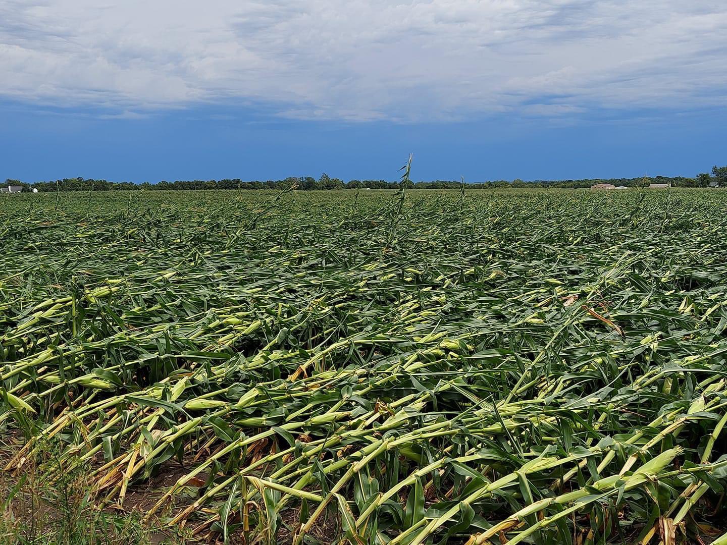 Los productores de la zona informaron que los campos de maíz fueron arrasados por ráfagas de viento que alcanzaron los 180 kph. Entre las imágenes que dejó la tormenta pueden verse silos retorcidos y arrancados desde la base, como granjas con voladuras de techos y animales muertos.
