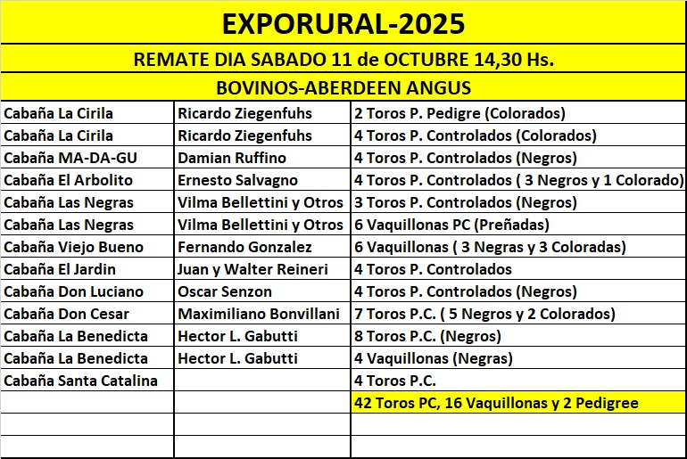 El sábado, el corazón de la Expo latirá al ritmo de la ganadería. Desde temprano, diez destacadas cabañas presentarán más de 100 reproductores Angus, junto a ejemplares Hereford y Limangus de primer nivel, en una muestra que refleja el potencial y la calidad genética del campo puntano.