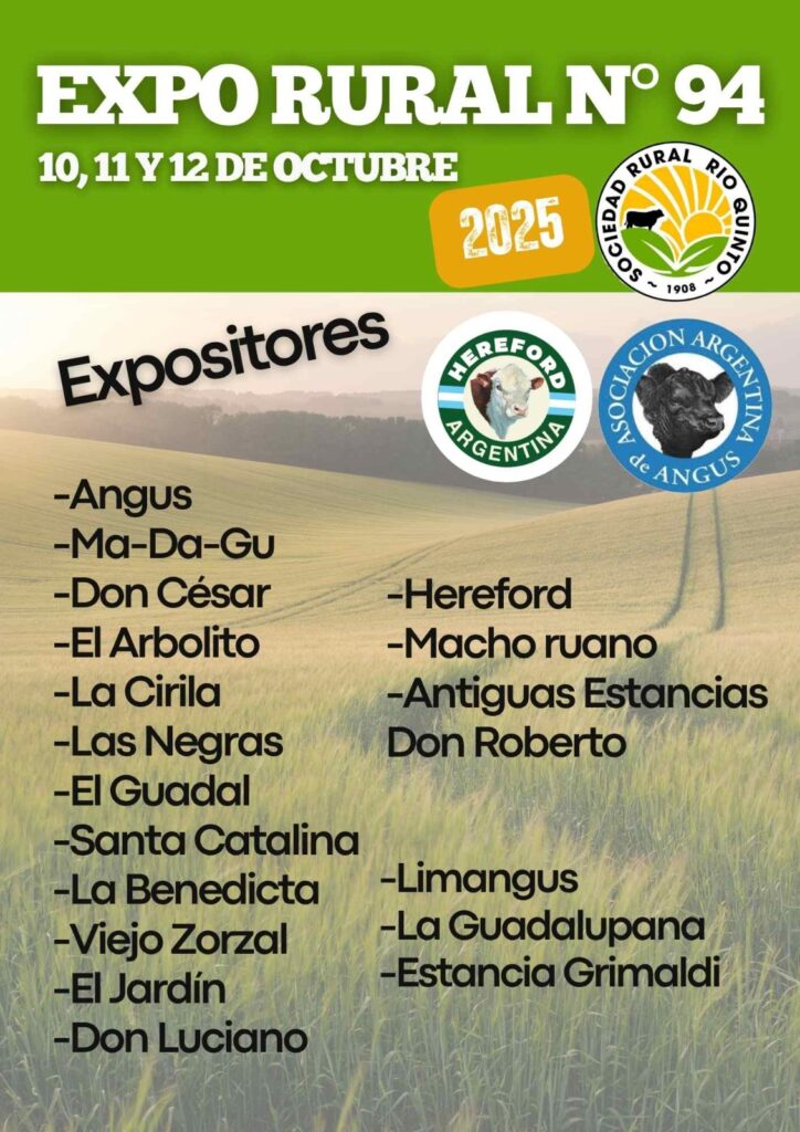 La Expo Rural Río Quinto 2025 invitó a todos a ser parte de esta gran celebración. Porque el campo no solo produce alimentos: produce orgullo, cultura y esperanza.