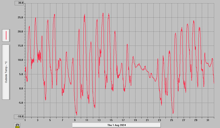 Las mismas mediciones revelaron que en el mes pasado hubo varios días donde se necesitaron grados de calefacción debido a las bajas temperaturas, con valores que oscilaron entre 4.7°C y 15°C.
