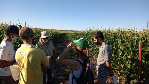 Durante el desarrollo de la jornada, los estudiantes realizaron tareas prácticas, tales como mediciones del estado hídrico del suelo, determinación de estados fenológicos, muestreo e identificación de plagas, enfermedades y malezas, caracterización de diferentes materiales genéticos, en los ensayos de híbridos de maíz, de cultivares de soja y lotes de producción (sorgo, soja y maíz) del establecimiento.