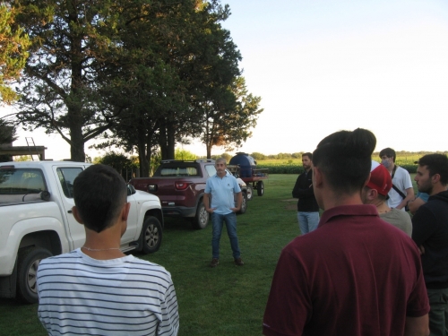 Los alumnos tuvieron la oportunidad de observar y realizar tareas prácticas (registro de datos, medición del estado hídrico del suelo, determinación de clorofila en hoja, reconocimiento de malezas, plagas y enfermedades y otras actividades) en las parcelas de híbridos de maíz, sembrados a diferentes densidades y dosis de nitrógeno. También se recorrieron lotes de producción de maíz y girasol sembrados en el establecimiento.
