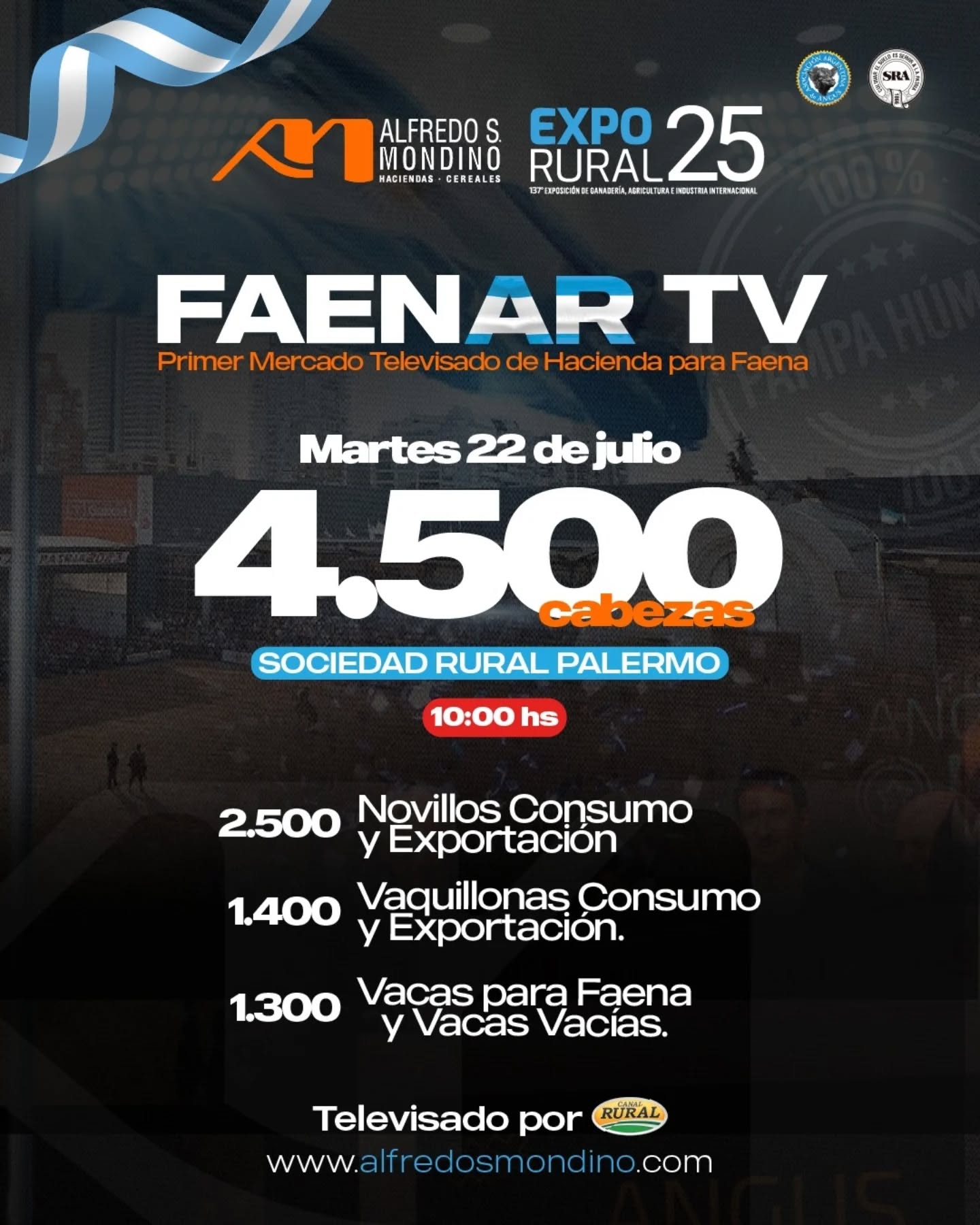 Organizado por Alfredo S. Mondino, el remate será televisado en vivo por Canal Rural y transmitido por sus plataformas digitales. El evento cuenta con el auspicio de la Asociación Argentina de Angus y reúne una destacada oferta de categorías de invernada y cría, como terneros, terneras, novillitos, vaquillonas y vientres.
