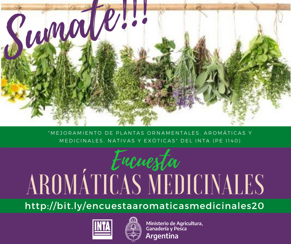 Un equipo de trabajo de INTA puso en marcha una encuesta pública con el fin de conocer hábitos de consumo y usos de plantas aromáticas medicinales y productos derivados. El objetivo es contribuir a la mejora del sector productivo industrial en nuestro país, que en su amplia extensión posee diferentes condiciones ambientales y gran diversidad vegetal, con más de 150 especies de uso potencial sólo en la zona centro.